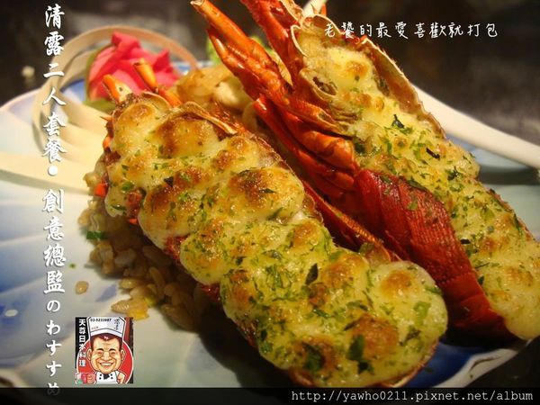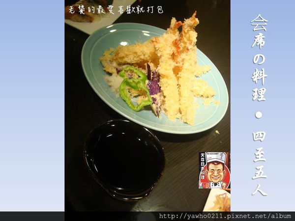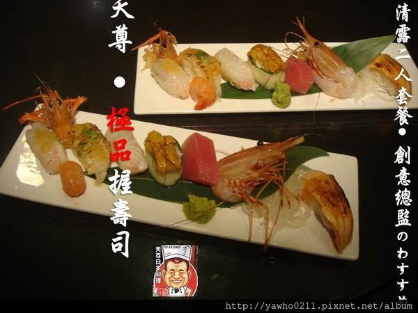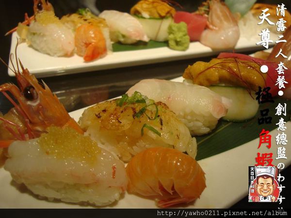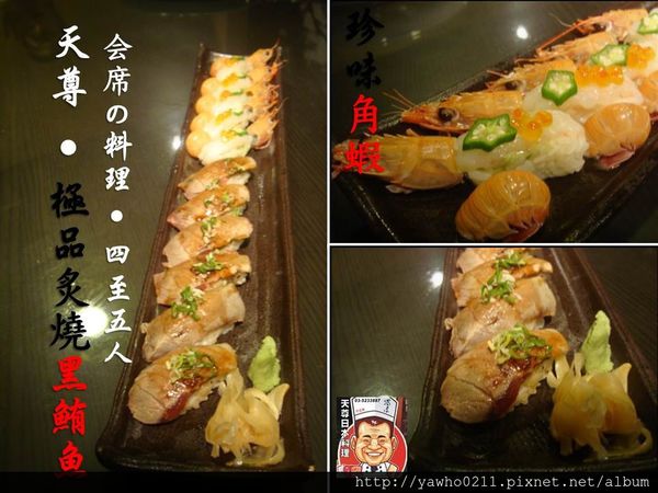 四~五人合餐包括角蝦 炙燒黑鮪魚握壽司炸海老螃蟹蒸蛋等