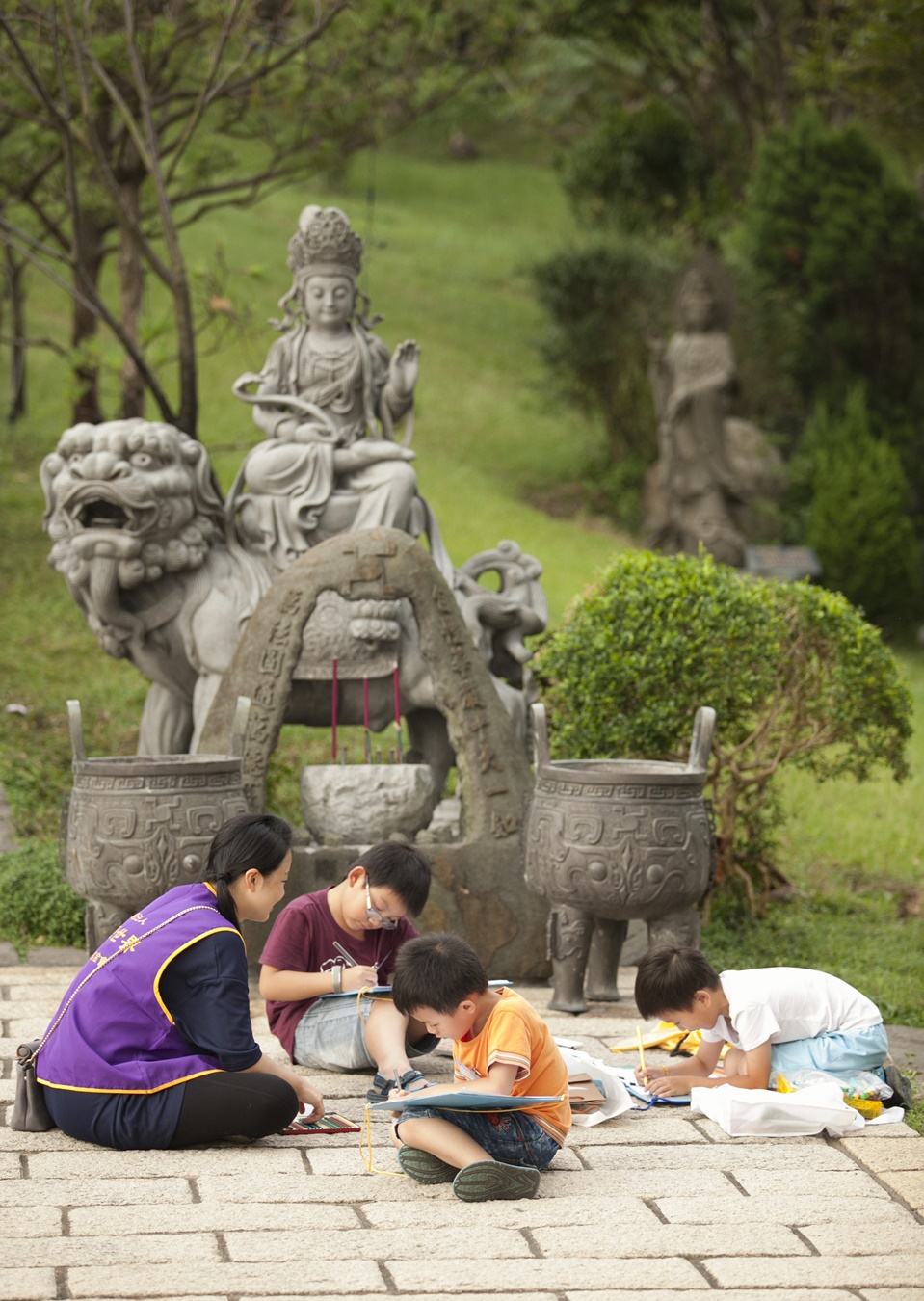 每梯次活動為期一整天,將從緣道觀音廟導覽開始,優美古樸的仿唐建築,讓小朋友們領略建築之美;坐落於日式庭園中、出自大陸雕刻名家之手的四大菩薩和三十三觀音,體會石雕藝術之美;山羊、松鼠、白鷺鷥、錦鯉……等豐富的園區生態和自然之美,給孩子們在都市生活以外的難得體驗,為接下來藝術課程提供創意的來源。