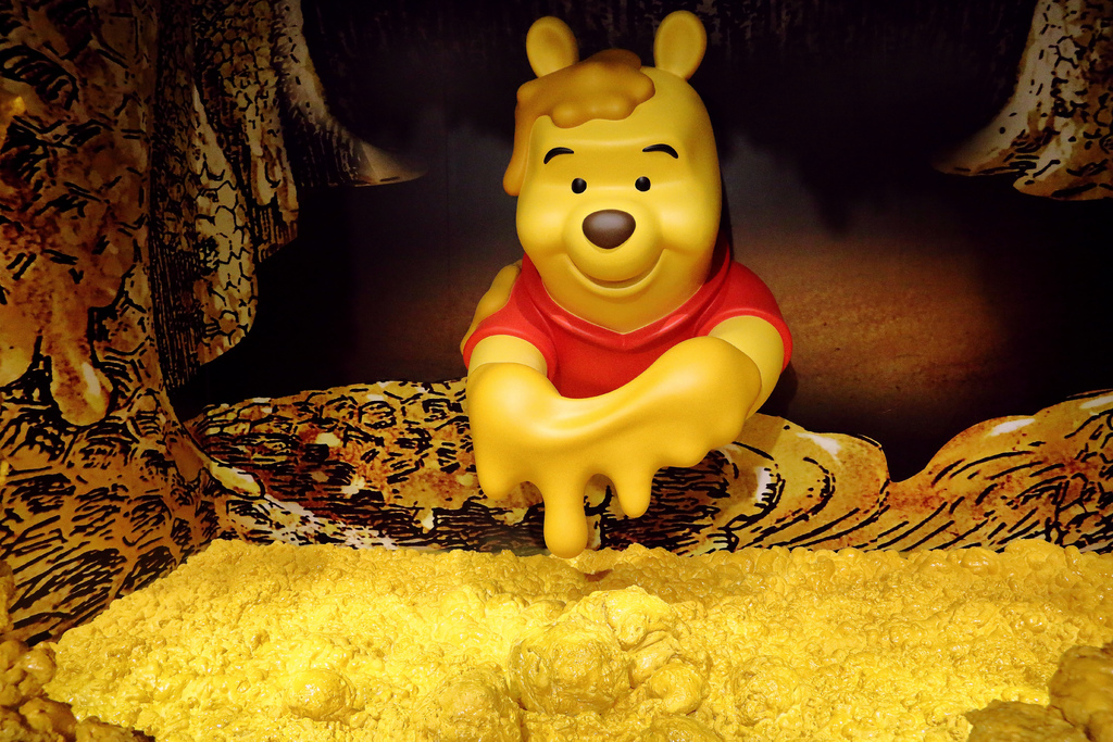 一同進入小熊維尼的異想世界:巨大的蜂蜜罐、嗡嗡作響的蜜蜂與香甜四溢的蜂蜜,徜徉於幸福時光。