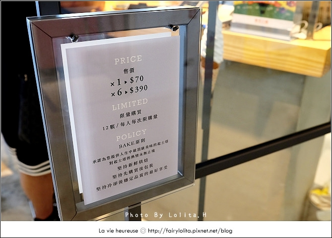 目前每人限購二盒,專程來買,我當然也是扛了兩盒回家,剛好今天太陽公公露臉,給了一個萬里晴空的好天氣,但在豔陽下排隊其實也是超級熱的啦!還好大部份都是排在百貨公司的騎樓下,再加上Bake工作人員也有提供白開水供排隊客人飲用,所以還不算太辛苦囉!:)