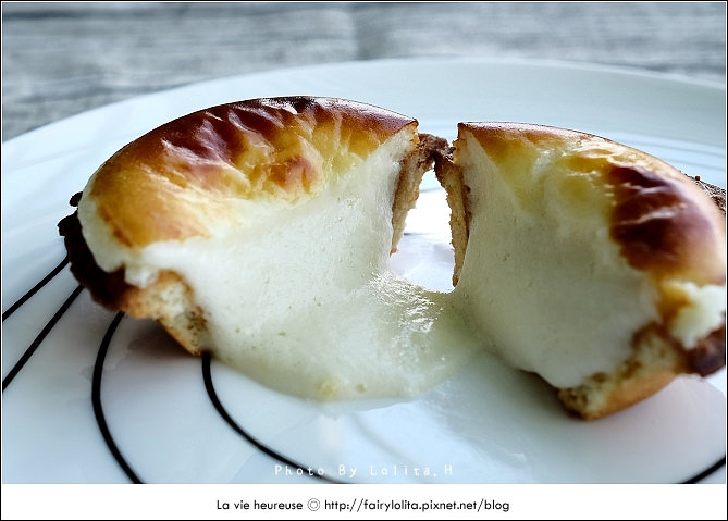 拿了一個扔進烤箱烤,這次內餡絲毫不客氣地給它全融化了,一切開像渲泄般,全湧了出來。
