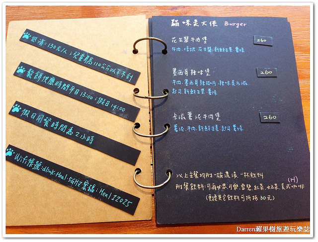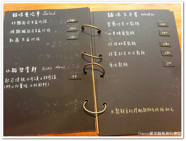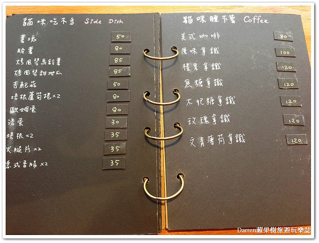MENU的大項以貓咪來命名,品項選擇性還算多,不過MENU可以在做的更精緻一點~呵呵