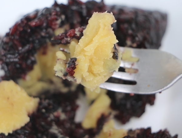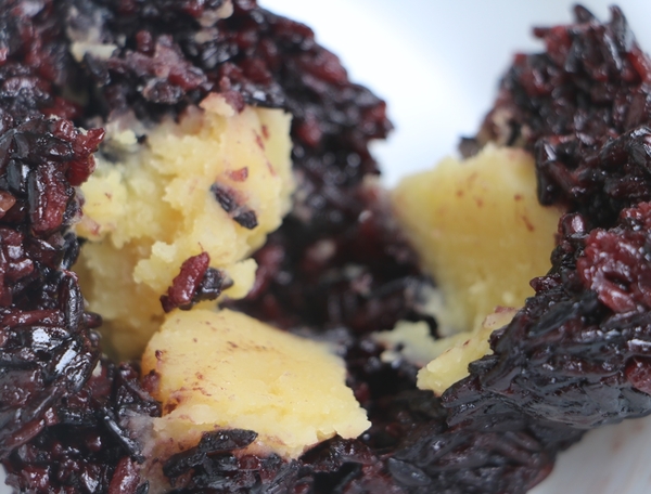將將,一切開是綠豆沙耶!!好驚喜喔,綿綿密密,吃起來甜甜的綠豆蓉搭配健康養生的紫米及糯米,帶出獨特的Q彈口感,外Q內軟,甜而不膩的讓你一口接一口、欲罷不能啊!!