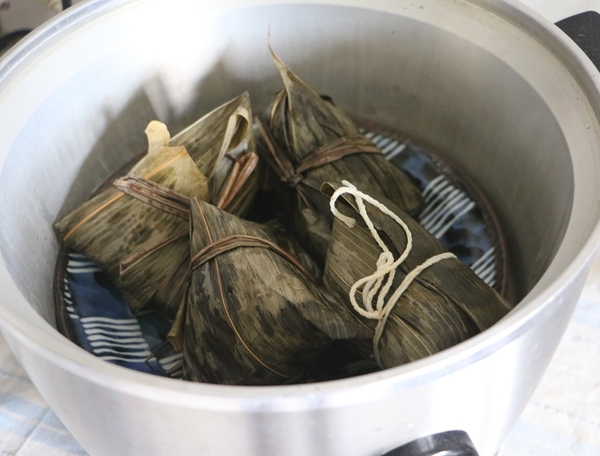 冷藏狀態下的干貝五花腩肉粽與紫米豆沙粽則以2杯水蒸煮;鮑魚櫻花蝦粽以3杯水蒸煮。