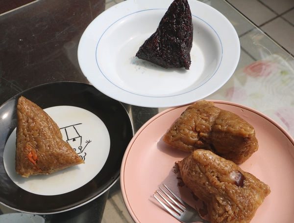 這一次體驗奇華五月粽一共有3種口味,有鮑魚櫻花蝦粽、干貝五花腩粽、紫米豆沙粽。每一種口味各2顆,而且都採用真空包裝,既使退冰後在冷藏幾天也不會壞。