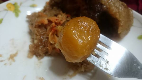 粽葉與粽子完美分離,粽子的呈現方式略為長形,米飯則是預先加上滷汁拌炒過的,色澤看起來就好可口喔!!