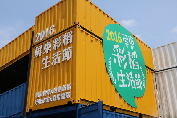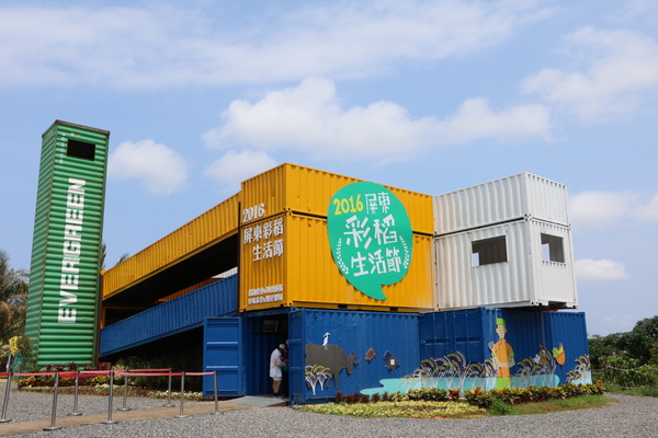 2016年屏東彩稻生活節,貨櫃屋組合的觀景景台,每次承重限150人次。