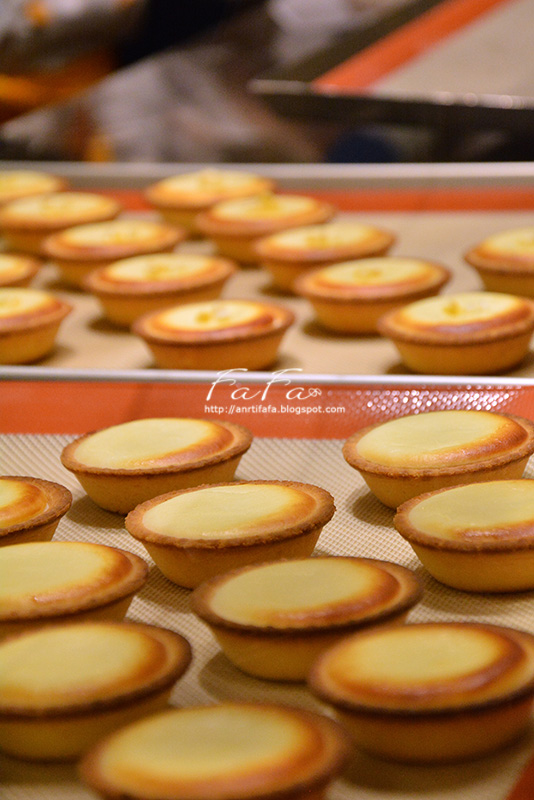 起司塔在烤箱時也沒閒著,店員會定時轉換烤盤讓受熱均勻。