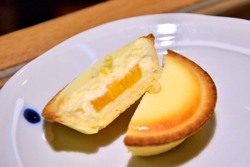 芒果口味是以原味起司塔為基底,將台南產地的愛文芒果以果泥狀態融入裏頭,