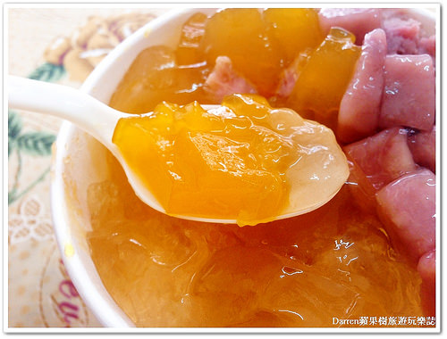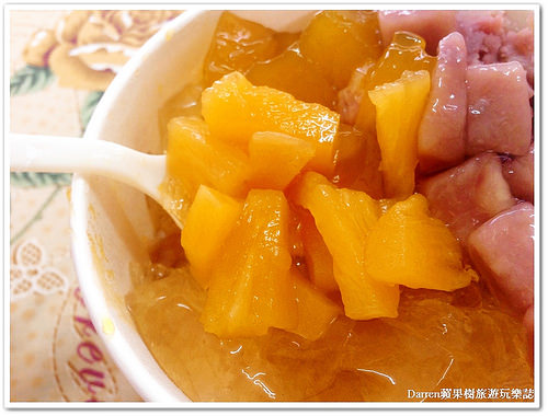 原本只有任選四樣配料,老闆娘太熱情跟我說這鳳梨煮很久,所以加了一些給我試試