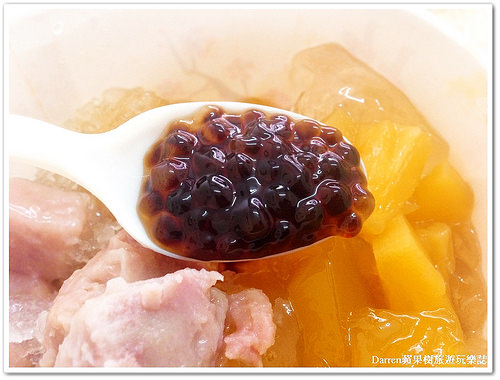 四種配料我選擇粉粿、芋頭、芋圓、愛玉,手工愛玉吃起來綿綿滑滑口感不錯