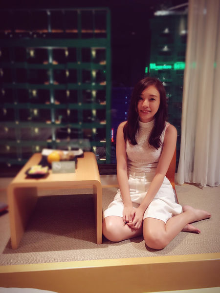 泳池在五樓的露天平台旁邊,一抬頭看就是酒店的身軀,一樣在夜晚看起來特別美麗