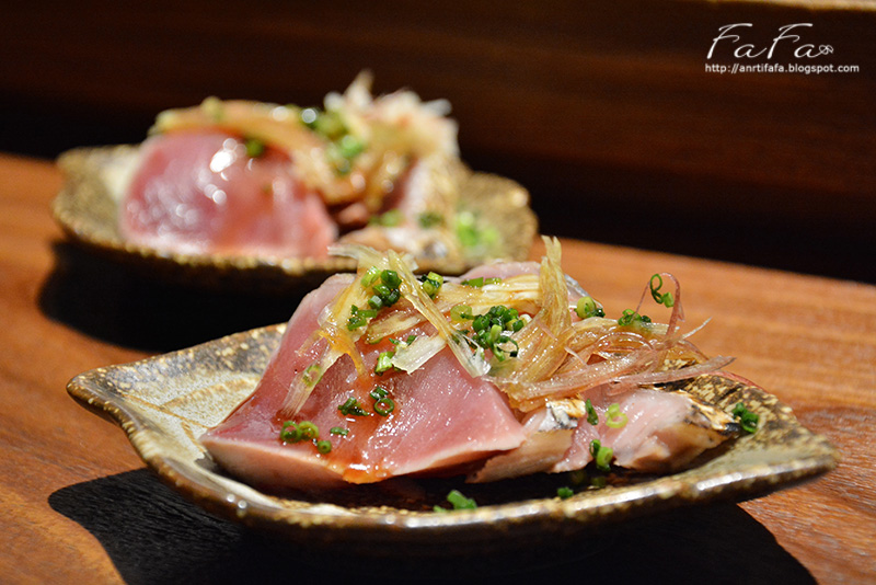 油旗魚生魚片,分別以生食及炙燒兩種方式呈現,我個人偏好生肉入口即化的口感,