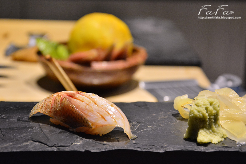 日本真鯛握壽司,大部分握壽司款,師傅會先在上頭刷上特製醬油才出餐,