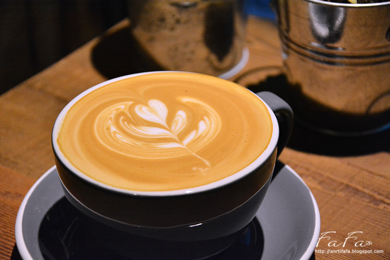 拉花線條特別纖細,小細節有精密感。咖啡苦香頗為明顯,