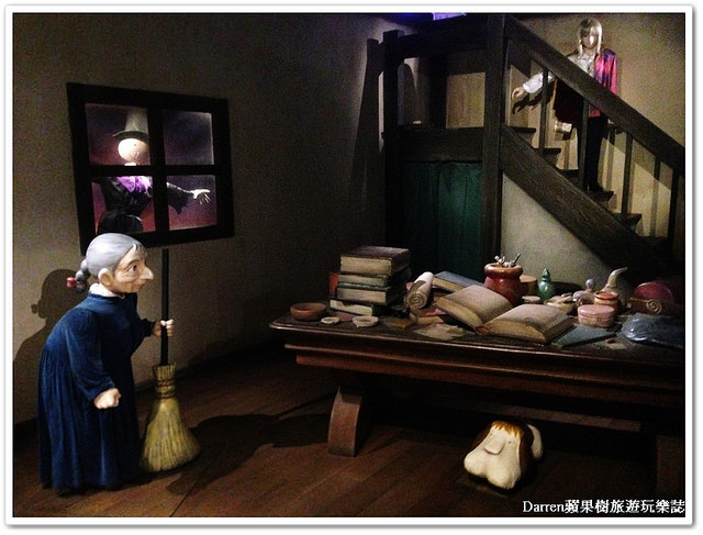 在這裡有2個互動場景,一個騎著掃把飛上天,一個是騎上腳踏車,這兩個都可以玩別錯過了