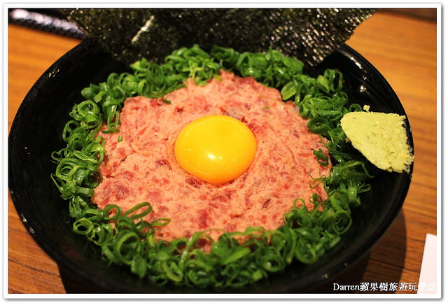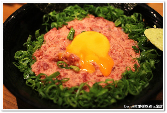 點丼飯就有個視覺上看起來很美觀的好處,鮪魚泥鋪好鋪滿中間一顆生雞肉,周圍一圈蔥花