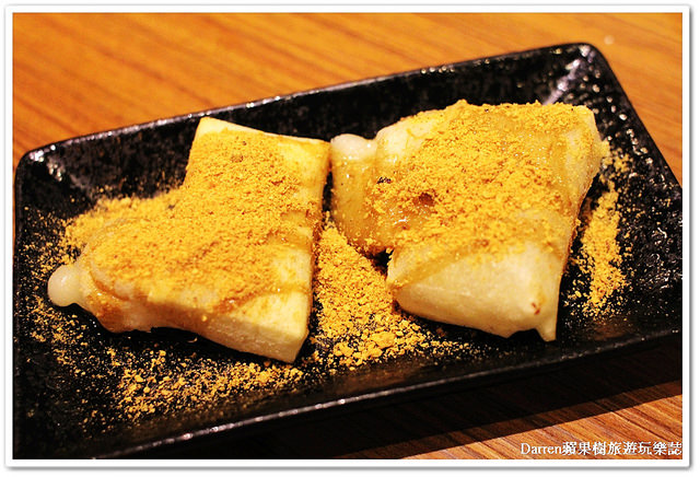麻糬烤到有點澎澎的,撒上花生粉和黑糖吃起來外脆內Q彈