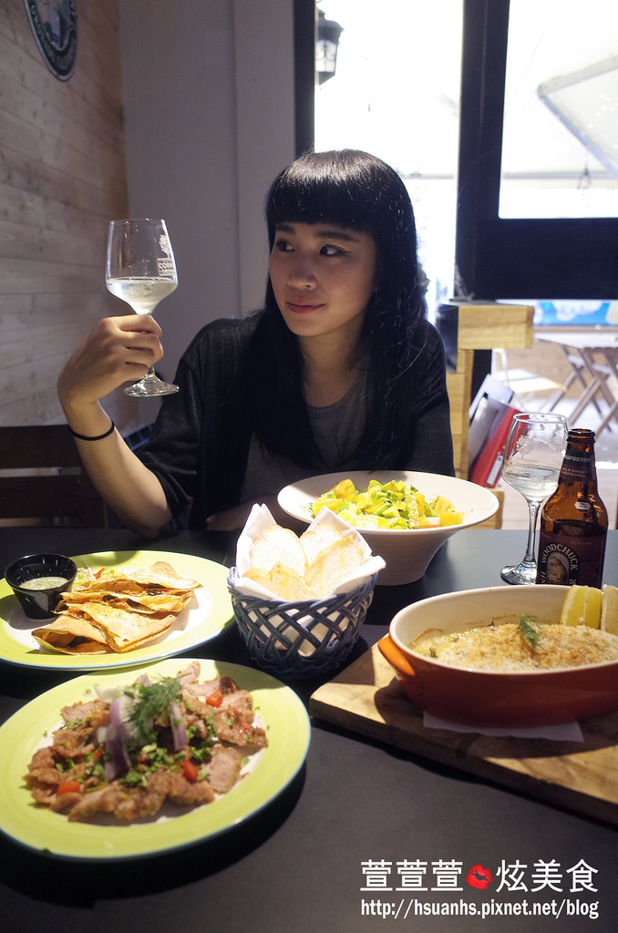 土撥鼠覆盆子氣泡酒 、橘香鳳梨優格沙拉、煙燻臘腸卡薩蒂亞、千里達青檸豬排、百里檸香巴沙魚