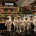 店內桌椅擺放得整整齊齊,幾幅牆面壁畫增添了點藝術感