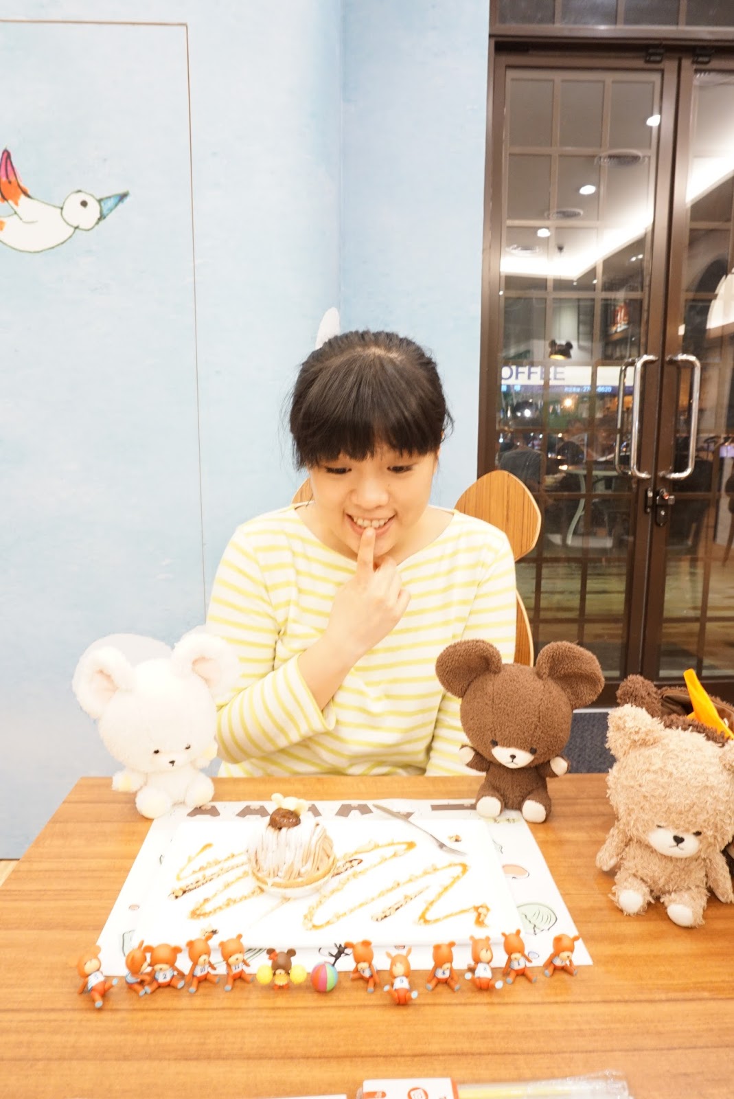2小時的慶生趴踢,在小小的兩人座席餐桌上,瞬間熱鬧了起來,我的心情也好得飛上天,看不見其他客人的側目,沒意識到店員的注目,不停地請小敦幫我拍照,中途,還因為圍繞著蛋糕的可愛哥哥們,讓店員也微失心瘋,衝向我請求借她拍張照,期待哪天可以在小熊學校快樂廚房的粉絲團上,看見哥哥們用心慶生的身影(祈禱)。