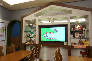說了一大堆失去理智的發言,也該稍微聊一下餐廳的陳設與餐點(笑)。在爬文時期,最吸引我目光的就是那一張張傑琪臉孔的椅子,其他輸出物的佈景素材都是來自故事書中的畫,不論是傑琪和哥哥在廚房做點心的場景、在森林玩耍的場景、看書的場景...等,雖然很萌,但最有新鮮感的還是那木頭椅(大心),真正坐下後,覺得輕飄飄的~真的是太可愛了,都想黏在椅子上一輩子不分離 ~