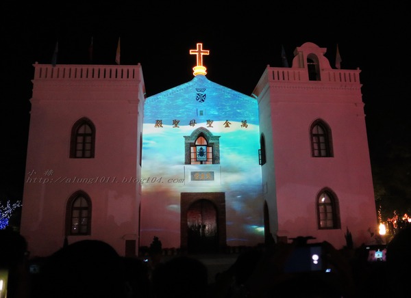 ◎3D光雕的現代科技投射在萬金聖母聖殿古老教堂好吸引人…