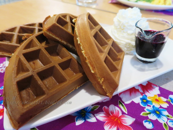 成果,沒有加牛奶,純粹的蛋香與麵糊香醇可口。加上細緻的鮮奶油與濃郁營養的藍莓果醬剛好。