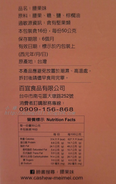 腰果妹1箱$600+運費$100(16盒裝/每盒50克)。