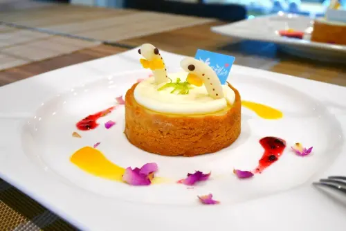檸檬的香氣搭配白乳酪慕斯,以及一點點的檸檬乳酪布丁