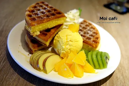 鬆餅是脆皮略帶有微焦的口感,但是味道是細緻的,每一口都可以吃到微焦的香味,搭配香濃巧克力冰淇淋或楓糖漿,真是將甜點的精神發揮到了極致!