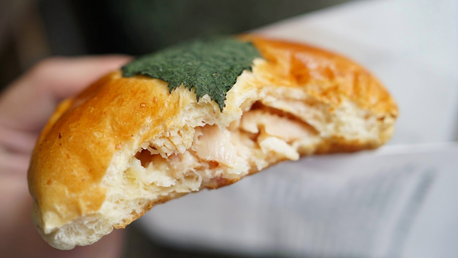 ▲放上一片咬人貓(蕁麻)烤的雞肉麵包。。