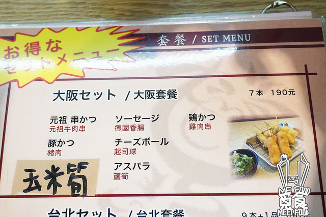 豬肉串 雞肉串 玉米筍 蘆筍 起司球 元祖牛肉串 德國香腸