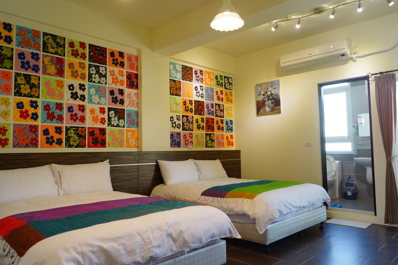 大花咪也是四人房,色彩很繽紛,看了心情很好吧~這些都是手工畫上去的壁畫唷!!!