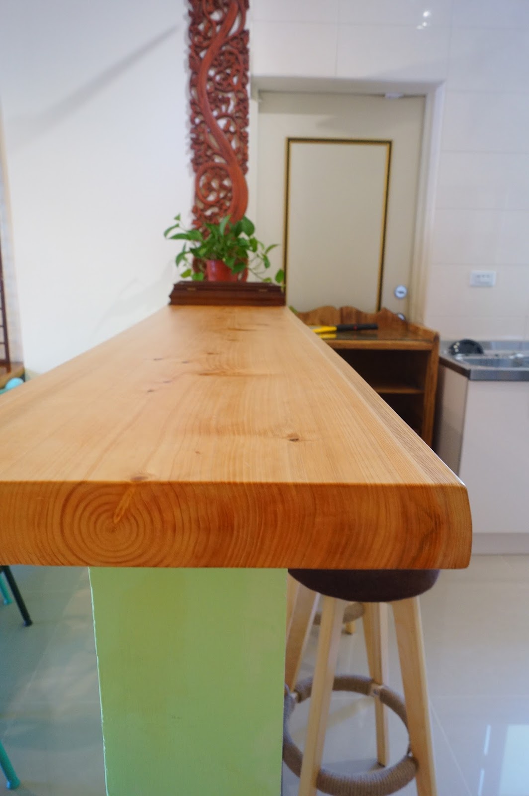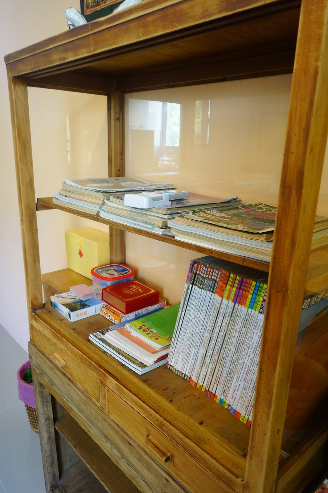 這個書櫃很有味道吧,這可是老闆一家人特別找來,然後自己再加工打磨的唷!