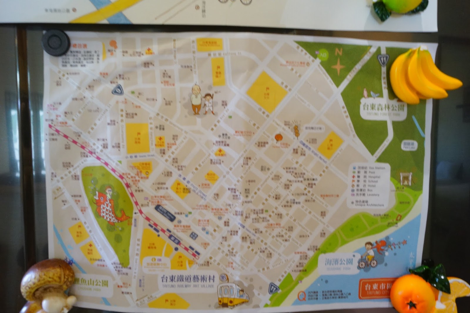 上方都有台東地圖,可以讓對台東不熟的旅客,可以很清楚的知到哪裡好玩跟要怎麼去。