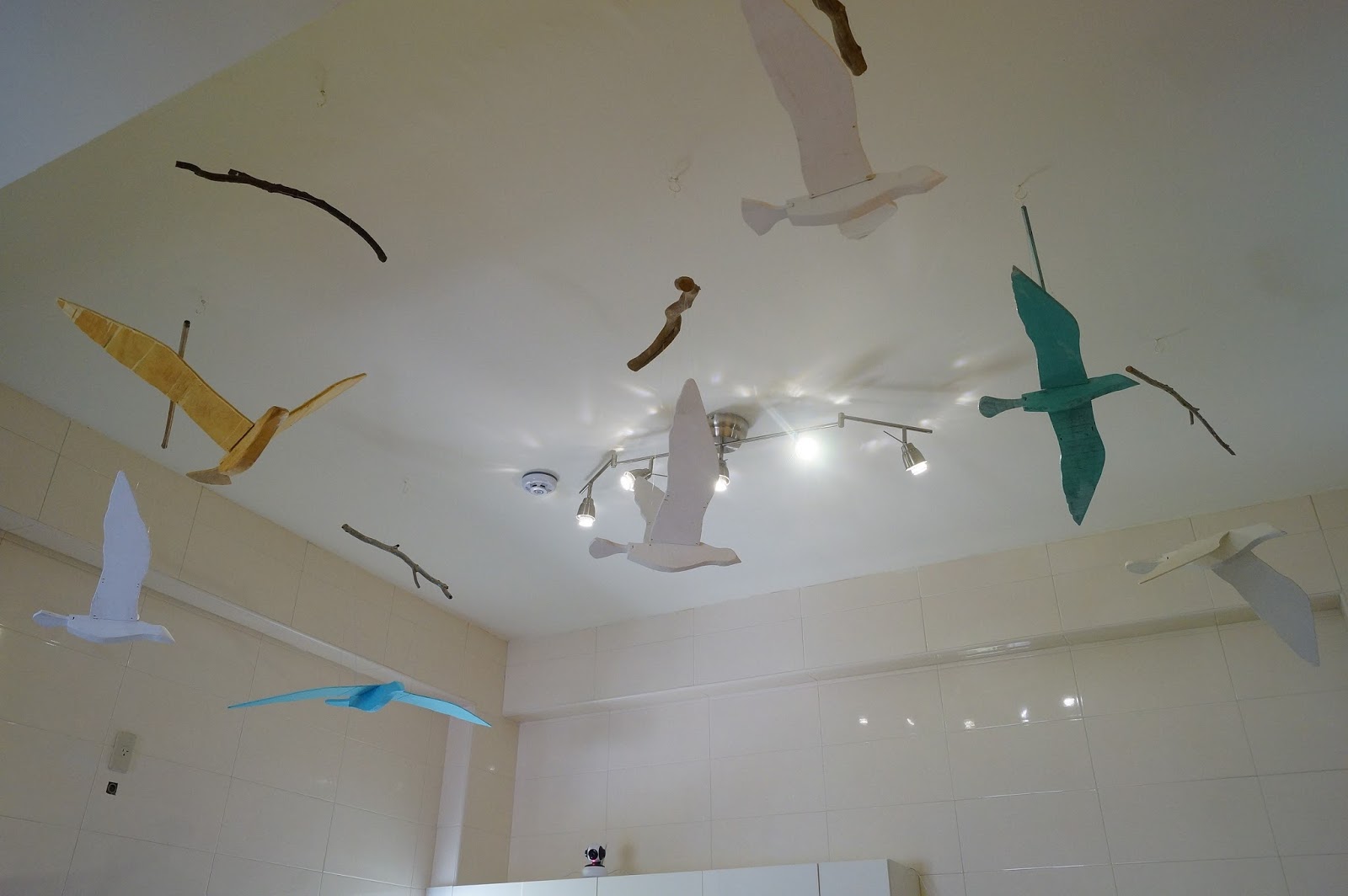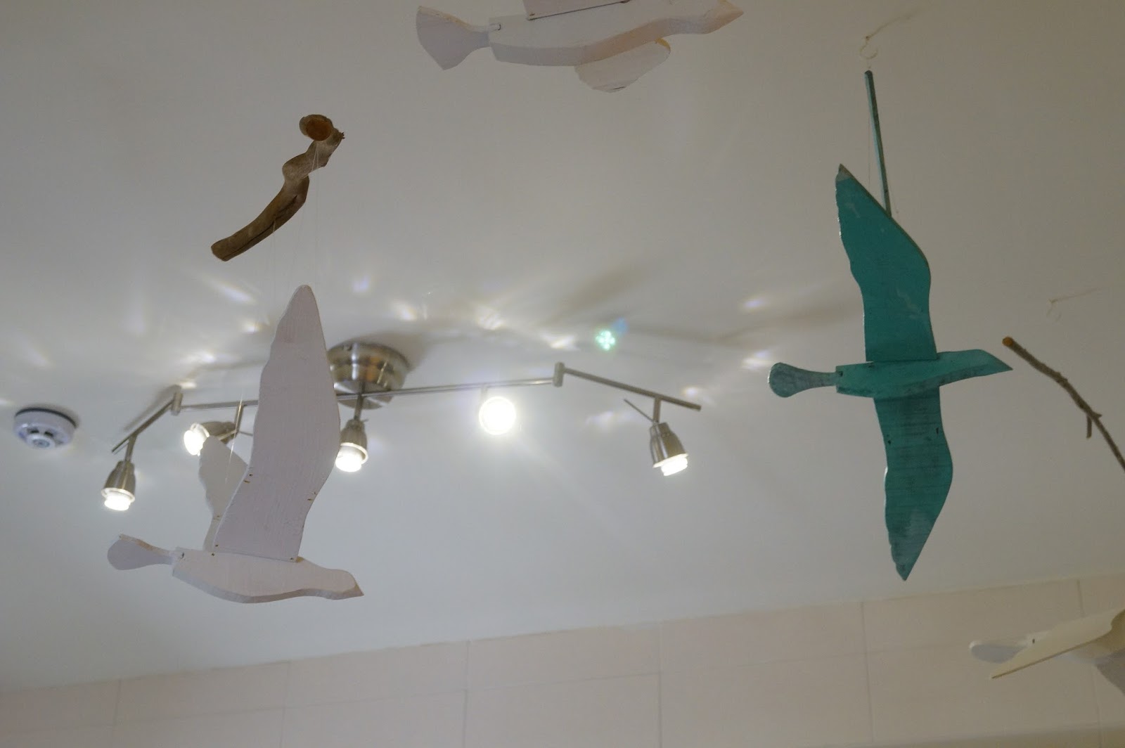 在交誼廳內抬頭可以看到這些木製海鷗,一開始還以為是老闆他們去買來掛上去的,一問之下才知道是他們自己手工做的耶! 真的很厲害喔~~~
