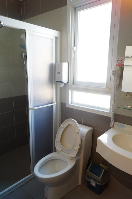不過這間的衛浴會稍微比較小些,也沒有乾濕分離,不過如果有需要老闆會提供止滑墊,垃圾桶也是有加蓋的唷,味道就不會飄散出來,很貼心!