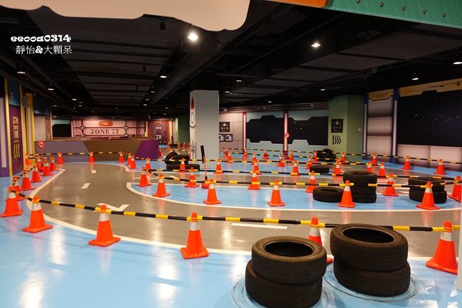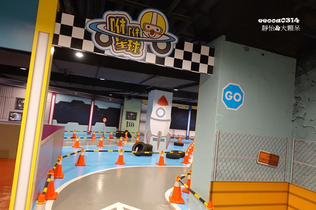 在卡樂次元孩子玩了好一段時間後,我們來到小男生也很愛的跑跑追風軌道車,小恩仔也超愛這區,好幾次都說要來玩車車