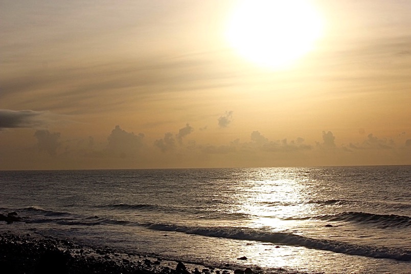 日出光芒一點一點點的擴大映照在海面上