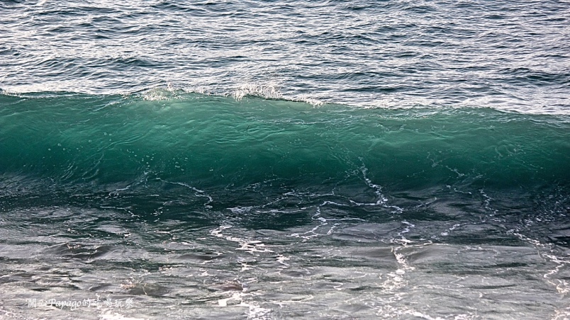 水藍色海水中帶出淺淺綠的一波波海浪
