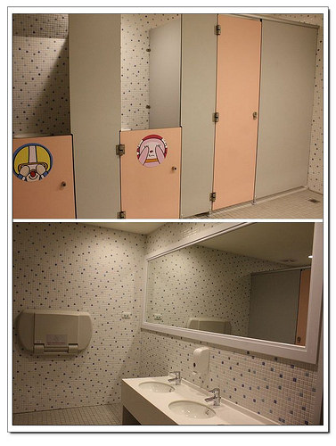 貼心設計之一是,洗手間就安排在卡樂次元星球樂園內,減少進出樂園的時間;洗手間內已經設有親子廁所、尿布台,方便爸媽們帶孩子們上廁所。(有些孩子常會因為想玩樂所以憋尿,能有就近的洗手間不只方便大人,其實也貼心孩子呢!)