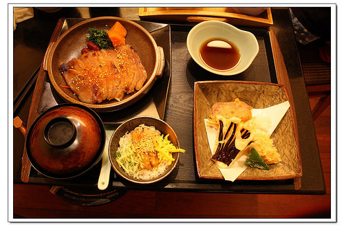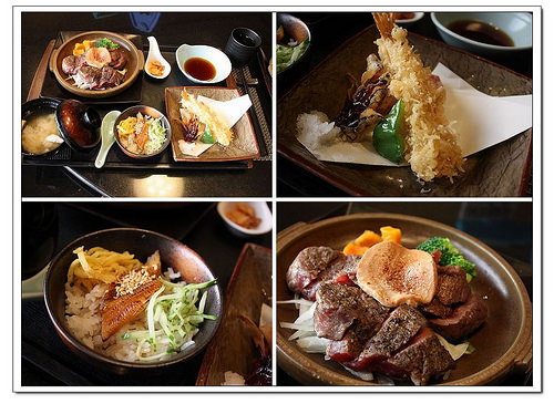 定食附餐有綜合生魚片、蒲燒鰻魚飯、炸天婦羅以及味增湯,雖然我吃的是松阪豬,但也有幫大家拍到其他主餐的照片-右下角為牛肉。