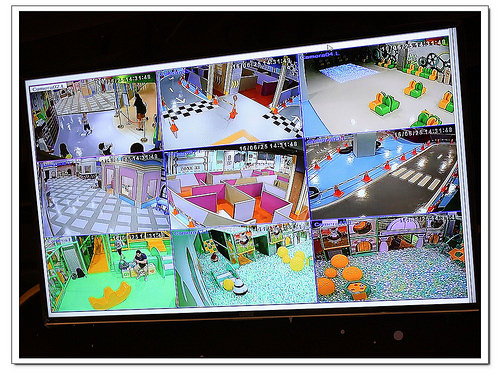 抬頭一看,各個遊樂區域還有監視畫面提供參考。