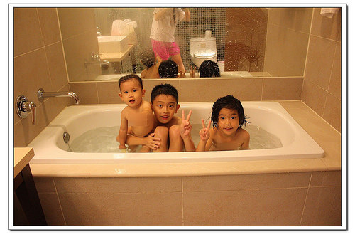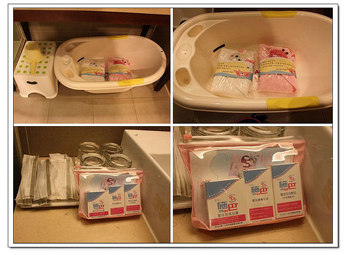 把小人一隻一隻洗完,一起丟進大浴缸裡,嘟嘟好。