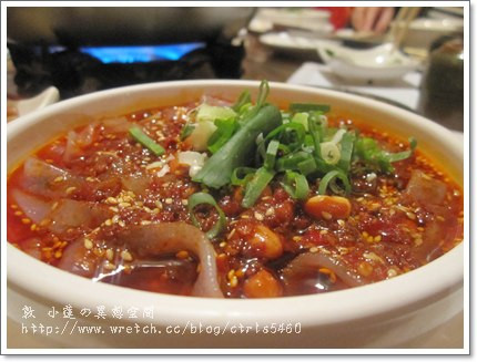 這大腸丟到麻辣鍋慢慢的煮啊煮