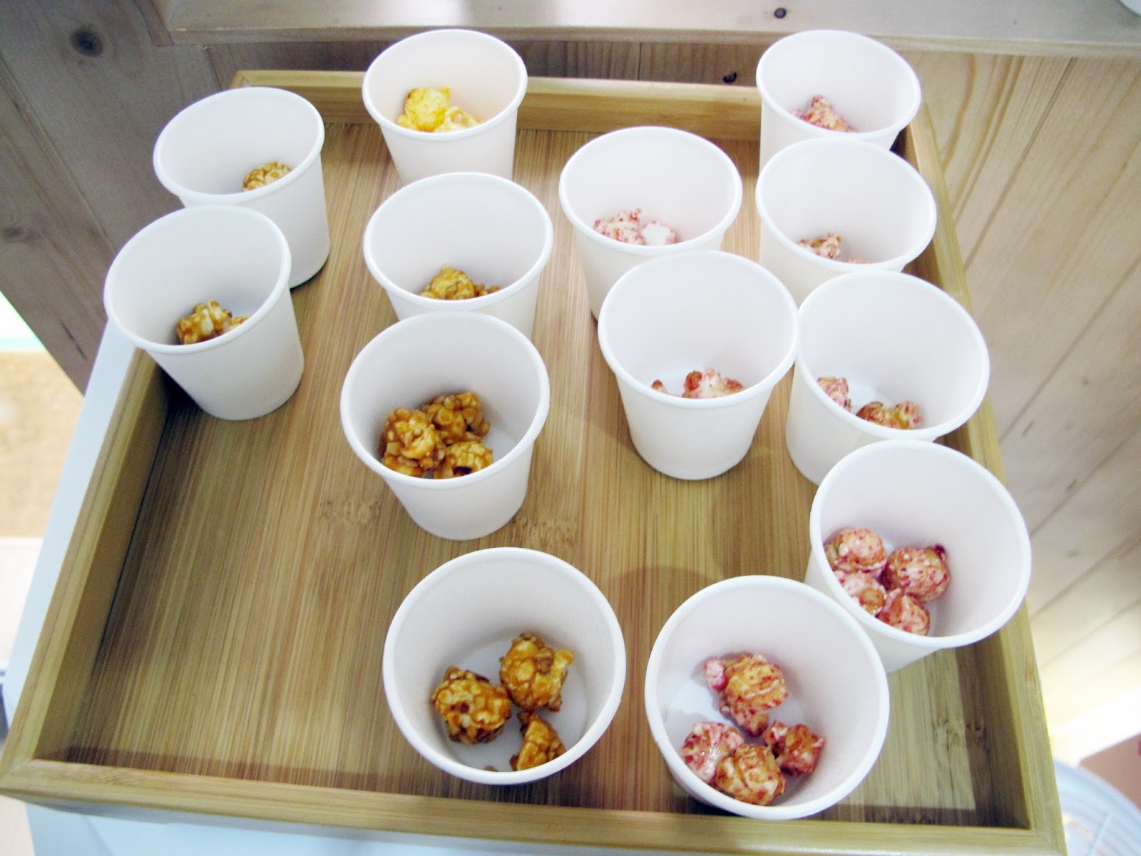 爆米花口味有經典焦糖、特濃奶油、香濃起司、杏仁酥脆焦糖、腰果酥脆焦糖