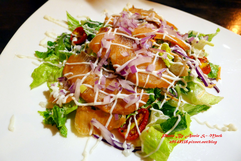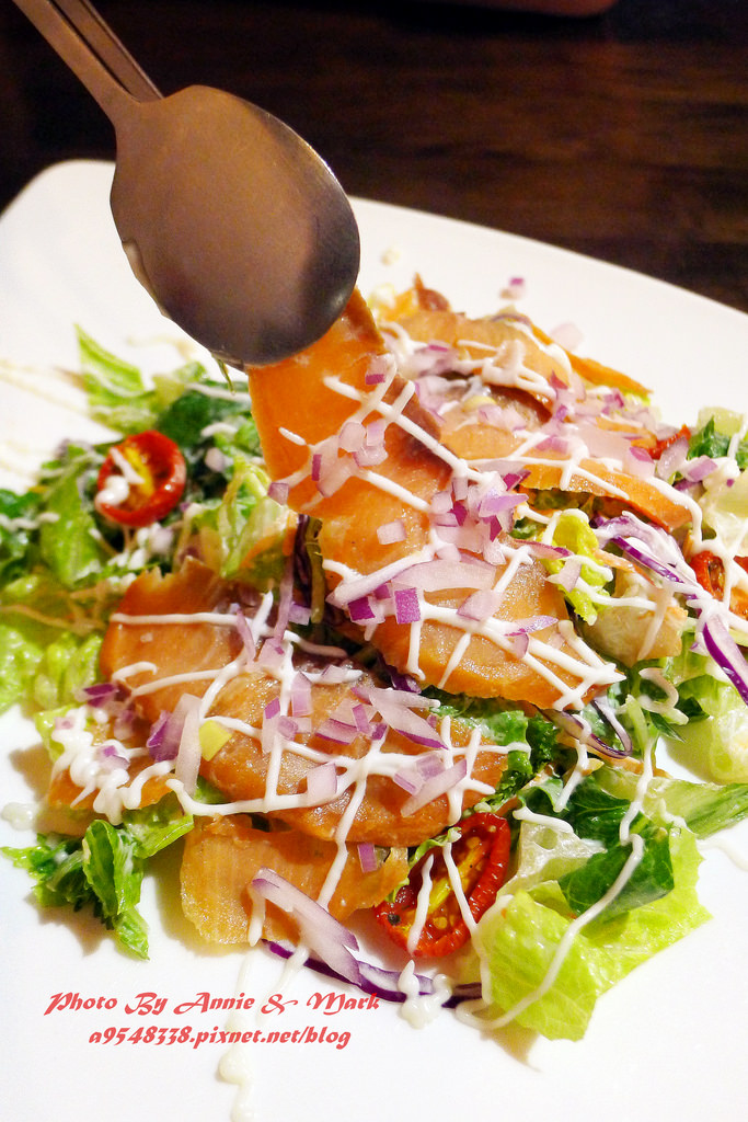 接著沙拉上桌,燻鮭魚生菜沙拉,260元,