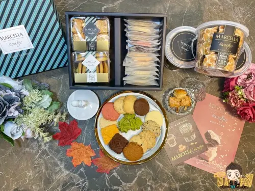 販售單盒裝的手工餅乾,是用透明塑膠盒封裝