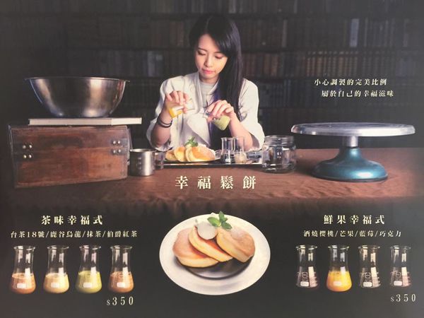 幸福鬆餅有茶味幸福式和鮮果幸福式兩種系列,各提供四種不同的淋醬,各350元!!!幸福鬆餅的宣傳影片可點此觀看唷~
